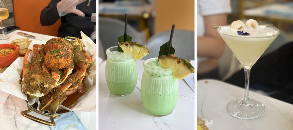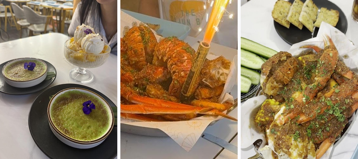 Definitely check out the creamy mussels, loaded shrimp fries, and the delectable lobster tossed in cajun sauce. Don't forget the pandan crème brûlée for dessert!
